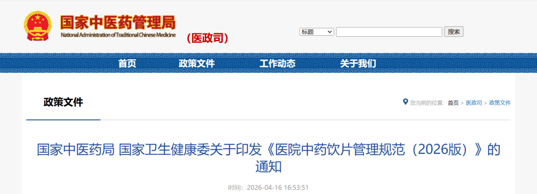 国家中医药局 国家卫生健康委关于印发《医院中药饮片管理规范(2026版)》的通知(附解读)