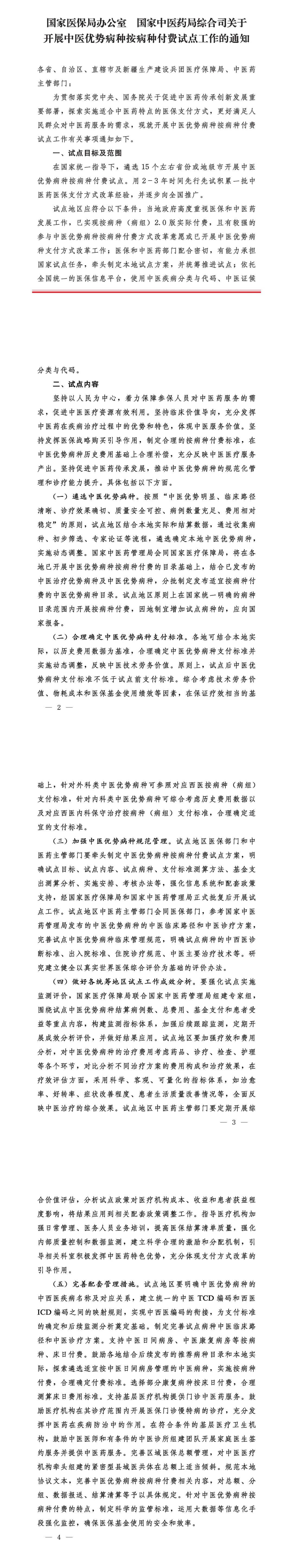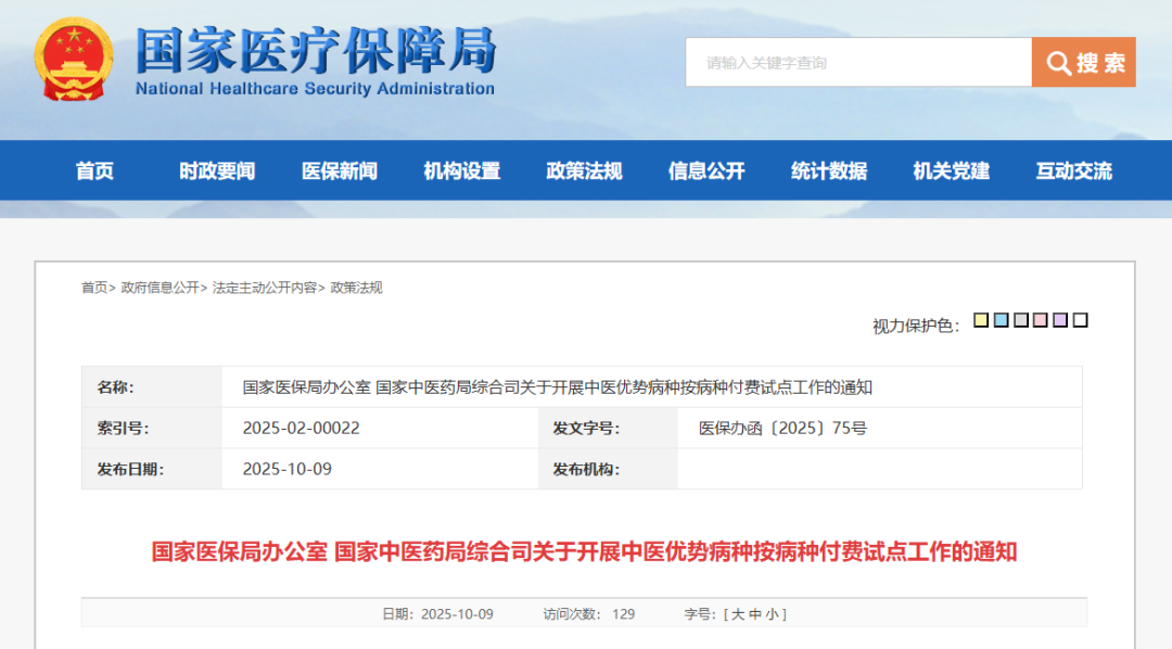 国家医保局、国家中医药局发布《关于开展中医优势病种按病种付费试点工作的通知》